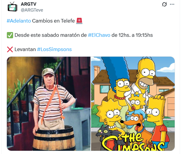 El reemplazo también llamó la atención: El Chavo del 8 tomará la posta de la tarde con sus repeticiones, recuperando un espacio que años atrás también había ocupado en el canal. La decisión impactó doblemente, considerando que Telefe emite Los Simpson desde 1991, convirtiéndose en un símbolo asociado al programa incluso cuando su propiedad pasó por Fox y, más tarde, Disney.