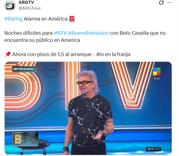 La situación se vuelve más delicada al observar que incluso otras propuestas lograron superarlo: Bienvenidos a ganar, el ciclo conducido por Laurita Fernández en El Nueve, alcanzó 2.2 puntos, quedando por encima del envío de América.