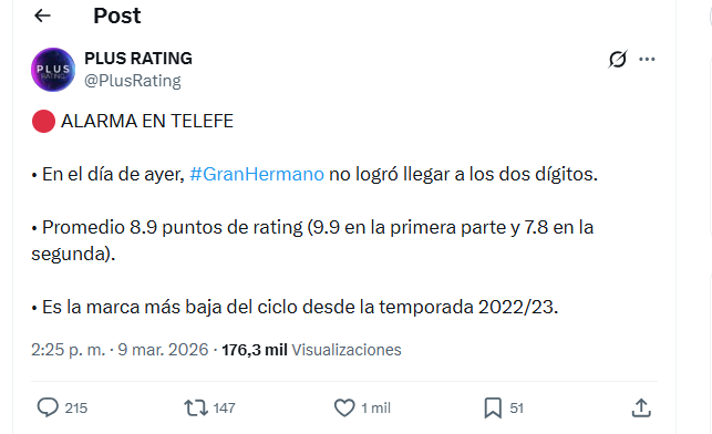 El dato rápidamente se viralizó entre los fanáticos del reality y en las redes sociales comenzó a instalarse el debate sobre si esta edición logrará recuperar el interés del público o si el formato está atravesando un desgaste natural tras el enorme éxito de temporadas anteriores.