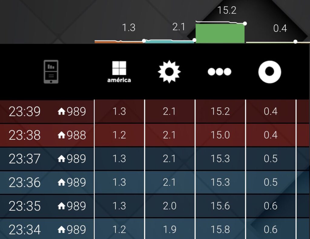 Minutos más tarde, el envío logró recuperarse levemente. A las 22.40 horas marcaba 17.0 puntos, mostrando un pequeño repunte en la curva. Sin embargo, la estabilidad no duró demasiado: a las 22.55 volvió a registrar una caída, ubicándose en 16.7 puntos.
