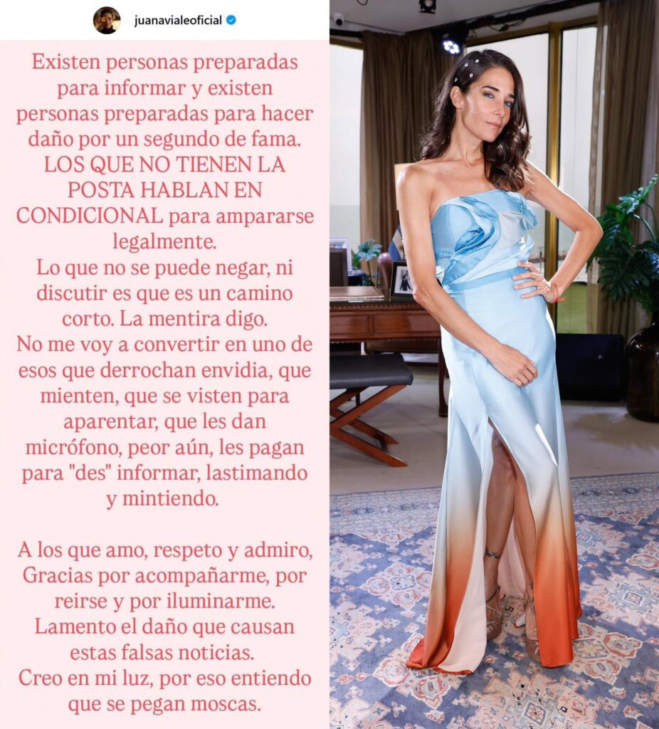 A través de un texto directo y sin eufemismos, Juana apuntó contra ciertos sectores del periodismo y los mecanismos con los que, según ella, se construyen rumores sin sustento. “Existen personas preparadas para informar y existen personas preparadas para hacer daño por un segundo de fama”, escribió en primer lugar.