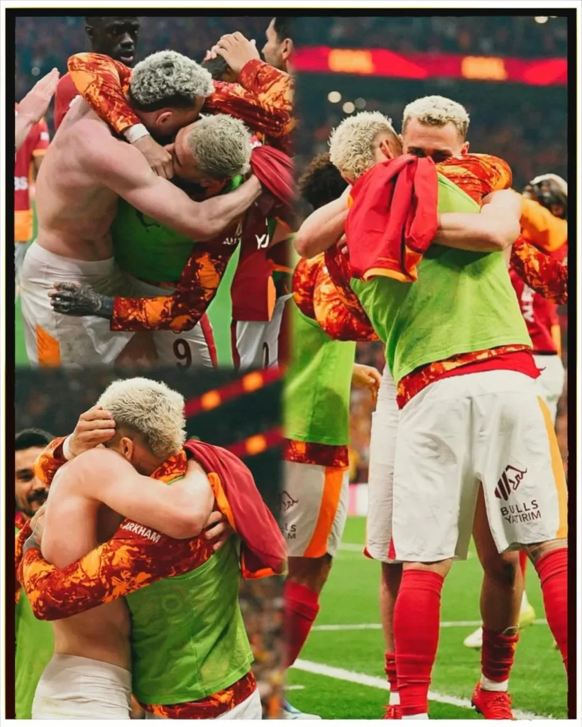 Pero el álbum no se quedó solo en lo romántico. Otra de las fotos lo muestra dentro del campo de juego, celebrando junto a sus compañeros tras un partido que fue clave para el equipo turco. La intensidad del encuentro, la emoción del vestuario y la alegría del triunfo quedaron reflejadas en cada imagen.