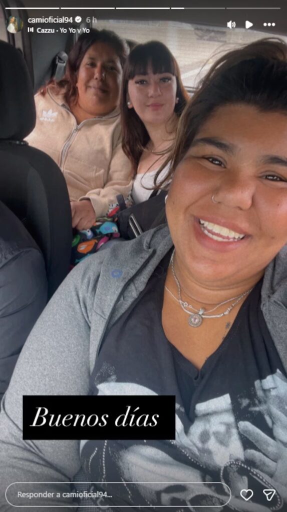 Este domingo, Camilota encendió las redes al compartir una historia que no pasó desapercibida. “Buenos días”, escribió junto a una foto en la que se la veía dentro de un auto junto a dos amigas. La publicación estaba acompañada por la canción “Yo yo y yo” de Cazzu, donde eligió el fragmento: “Tengo la cinta roja para la envidia preparada. Las nenas no creemos, papi en cuentos de hadas. Yo siempre sigo humilde pero ahora más cotizada. Me odian porque saben que no me quedo callada.”